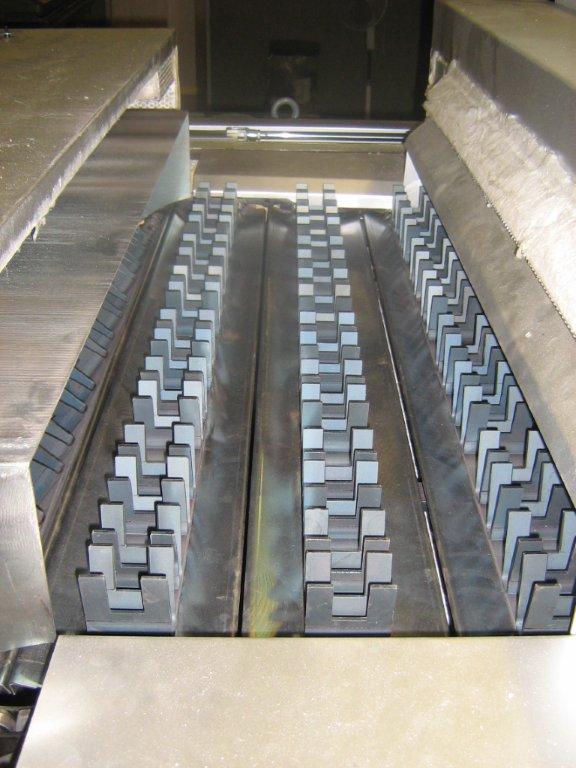 Durch eine speziell entwickelte Temperaturregelung, die stufenlos einstellbaren Förderbandgeschwindigkeiten und die optimale Justierung jedes einzelnen ausgelieferten Ofens können wir ein sehr breites Produktspektrum verarbeiten.
