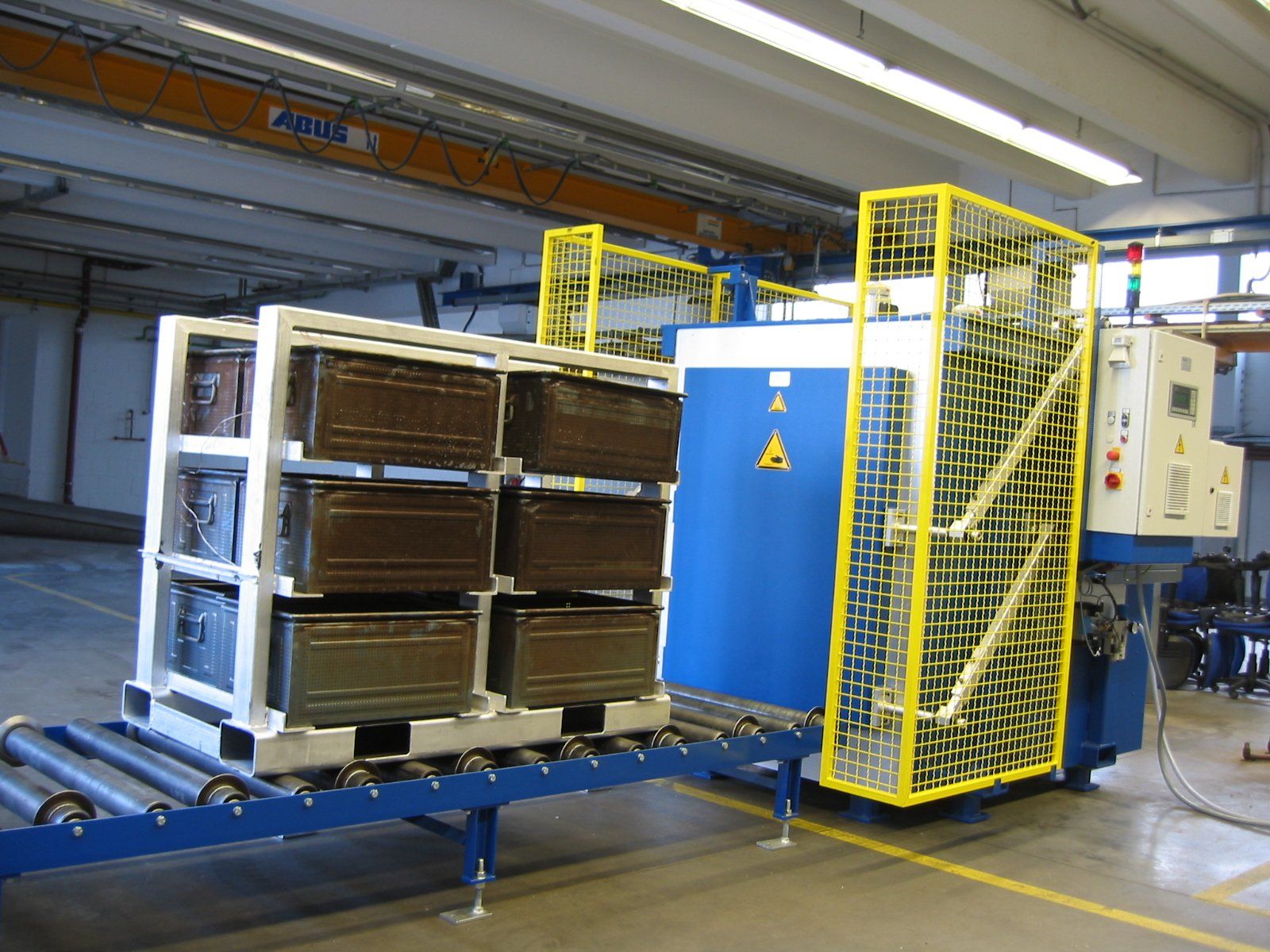 We plan and realise exactly the chamber furnace you need for your company: CE and CQI-9 compliant, with capacities from 5 kg - 1,500 kg for a combustion chamber with a volume of 2 l to 10 m³. The control of the kiln temperature (from 50 °C to 600 °C) is done by PLC, BDE, temperature controller or energy consumption measurement are of course also possible. Filling and emptying can also be semi or fully automated on request, in order to fully integrate the chamber kiln into running production and process chains.